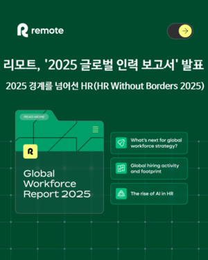[위클리오늘=정영준 기자] 글로벌 HR 플랫폼 기업 리모트(Remote)가 ‘2025 글로벌 인력 보고서’(Global Workforce Report 2025)를 발표했다.리모트는 23일 “최근 발표한 ‘2025 글로벌 인력 보고서’를 통해 2026년까지 해외 채용 흐름이 더욱 보편화되고, HR 업무의 많은 부분에서 AI의 역할이 더욱 커질 것으로 전망된다”고 밝혔다.리모트는 글로벌 HR 플랫폼 기업으로, 글로벌 채용을 비롯해 급여, 복리후생, 세금 및 규정 준수 문제 등을 종합적으로 지원한다.업체에 따르면 리모트는 매년 미주·유럽