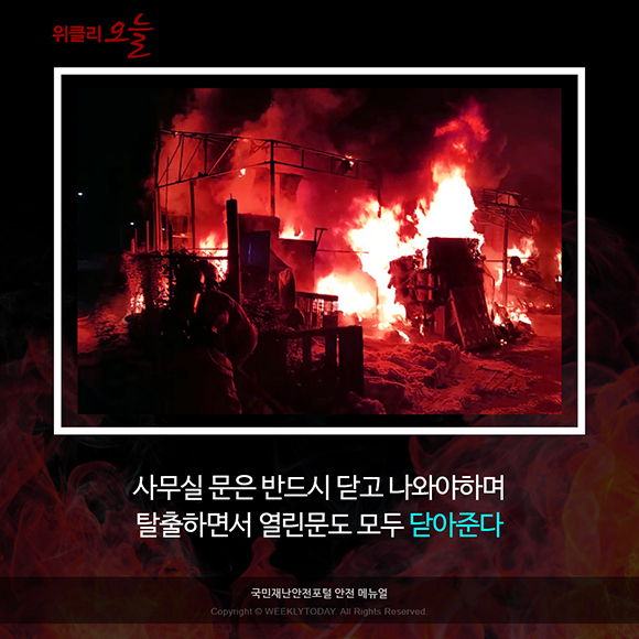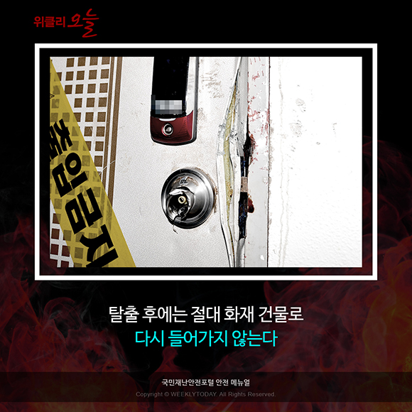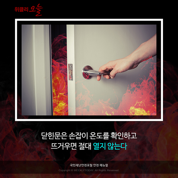 ▲닫힌문은 손잡이 온도를 확인하고 뜨거우면 절대 열지 않는다.