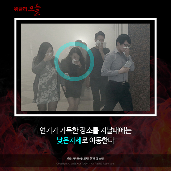 ▲연기가 가득한 장소를 지날때에는 낮은자세로 이동한다.