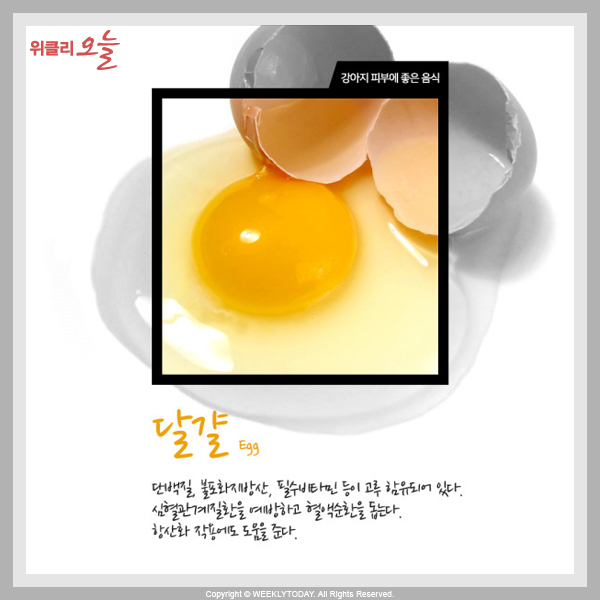 [위클리오늘=이승민 기자] 돈 들이지 말자, 정성을 들이자. 잘못 가공된 사료나 간식은 강아지 피부병의 원인이 된다. 조금만 부지런해 지면 반려견 간식이나 영양제에 돈 쓸 필요 없다. 반려견에게 먹여도 되는 몸에 좋은 천연 식재료의 숨겨진 효과를 알아보자.