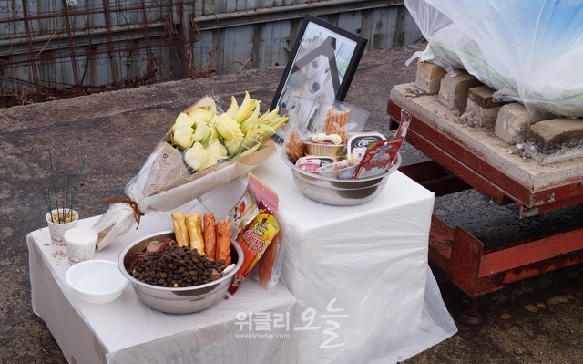 이날 행사는 마련된 제단에 익산유기동물보호소에서 죽은 유기견의 영정 사진과 꽃, 음식을 차리고 희생된 동물들을 애도하는 축문 낭독과 묵념하는 순서로 진행됐다.