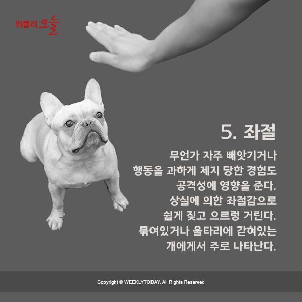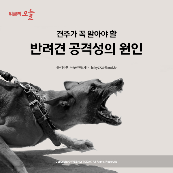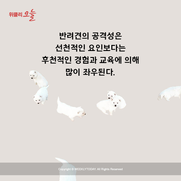 [위클리오늘=이승민 기자] 반려견의 공격성은 선천적인 요인보다는 후천적인 경험과 교육에 의해 많이 좌우된다.