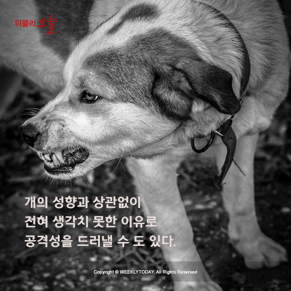 개의 성향과 상관없이 전혀 생각치 못한 이유로 공격성을 드러낼 수 도 있다.
