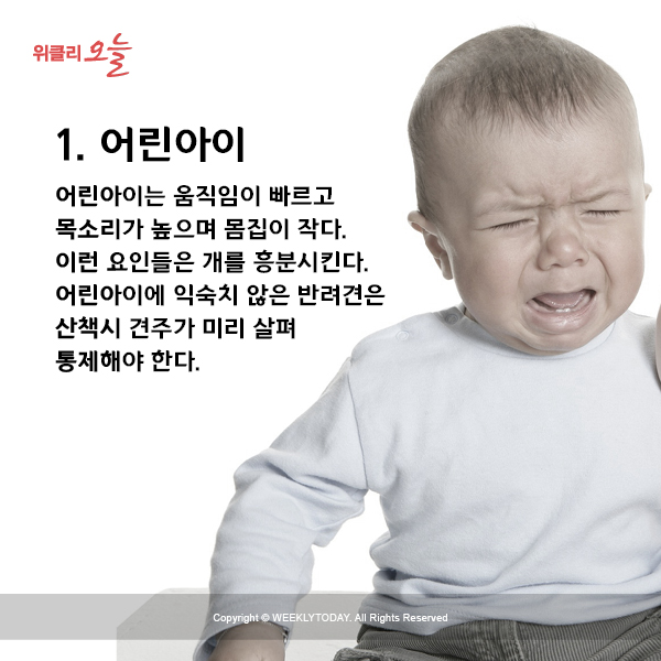 어린아이는 움직임이 빠르고 목소리가 높으며 몸집이 작다. 이런 요인들은 개를 흥분시킨다. 어린아이에 익숙치 않은 반려견은 산책시 견주가 미리 살펴 통제해야 한다.