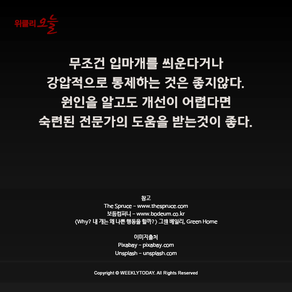 무조건 입마개를 씌운다거나 강압적으로 통제하는 것은 좋지않다.
