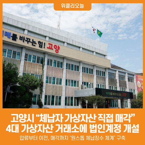 [경기 위클리오늘=박종국 기자] 고양특례시는 국내 주요 4대 가상자산 거래소인 업비트, 빗썸, 코빗, 코인원에 모두 비영리 법인 계정을 개설하고, 압류된 체납자의 가상자산을 시 계정으로 이전해 직접 매각하는 절차를 오는 12월부터 본격화한다.