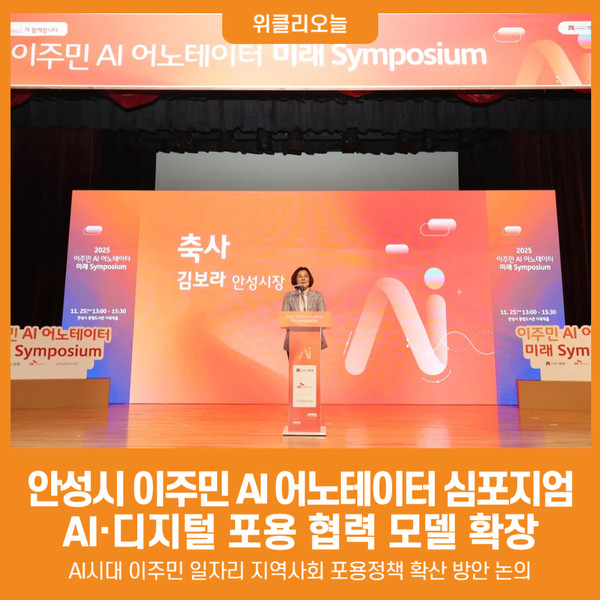 [경기 위클리오늘=박종국 기자] 안성시와 SK하이닉스, 함께일하는재단은 지난 25일 안성시중앙도서관 다목적홀에서 ‘2025 이주민 AI 어노테이터* 미래 심포지엄’을 개최했다.