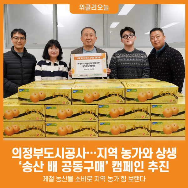 [경기 위클리오늘=우서연 기자] 의정부도시공사는 지역 농가와의 상생 기반을 강화하기 위해 의정부지역농협과 협업해 제철 송산 배 공동구매 캠페인을 추진했다. 이번 캠페인은 도농 상생을 위한 지역 농산물 소비 촉진과 지역사회 연대 강화를 목표로 진행됐다.