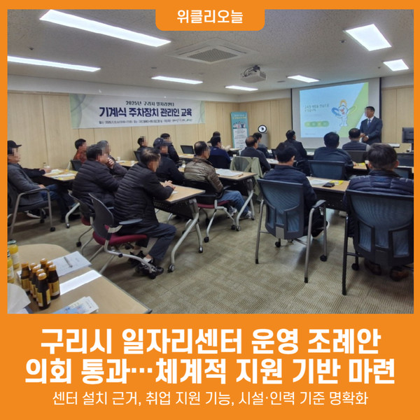 [경기 위클리오늘=박종국 기자] 구리시는 지난 11월 25일 열린 ‘제354회 구리시의회 제2차 정례회’에서 '구리시 일자리센터 설치 및 운영 조례안'이 원안대로 의결됐다.