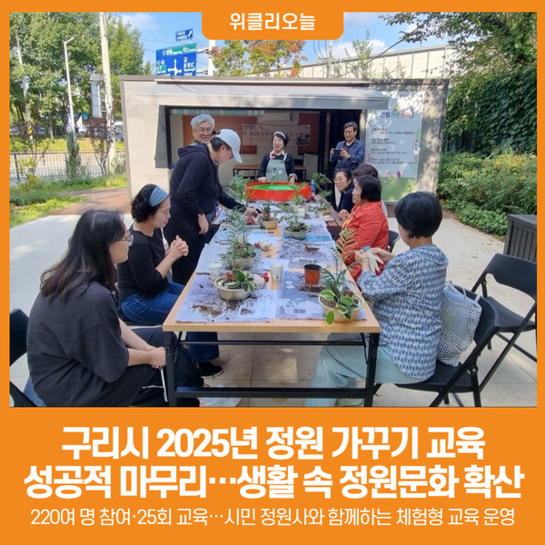[경기 위클리오늘=박종국 기자] 구리시는 지난 11월 25일, 8월 26일부터 총 25회에 걸쳐 토평동 민벌가든센터에서 진행한 ‘2025년 정원 가꾸기 교육 프로그램’을 성공적으로 마무리했다.