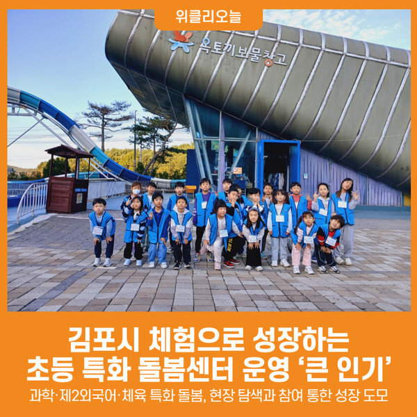 [경기 위클리오늘=박종국 기자] 민선8기 김포시가 운영중인 특화돌봄센터가 현장 중심 체험학습으로 학생과 학부모 모두에게 큰 인기를 끌고 있다. 교육발전특구 사업의 일환인 특화돌봄센터는 총 3개소로, 운영센터별로 각각 과학, 제2외국어, 스포츠 등 특화된 요소를 띄고 운영되고 있다. 만족도가 높은 지점은 특화요소가 현장 체험을 통해 자연스러운 습득으로 이어질 수 있게 프로그램되어 있고, 아이들 스스로 탐색하고 참여하는 방식으로 진행된다는 점이다.