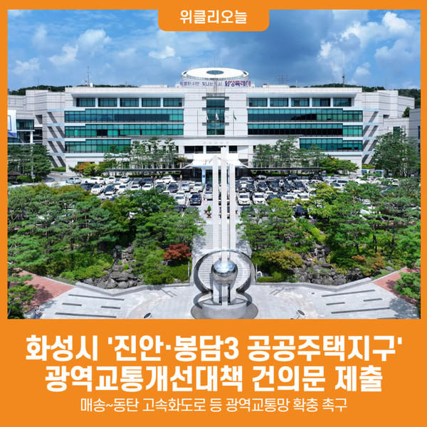 [경기 위클리오늘=박종국 기자] 화성특례시가 국토교통부, 한국토지주택공사(LH), 경기도에 ‘화성진안·봉담3 공공주택지구 광역교통개선대책 반영 요청 건의문’을 제출했다.